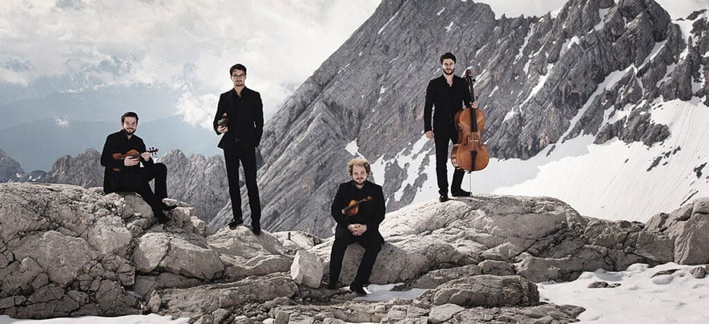 Herzlichen Glückwunsch für die Musiker des Goldmund Quartetts: Florian Schötz, Pinchas Adt (beide Violine), Christoph Vandory (Viola) und Raphael Paratore…