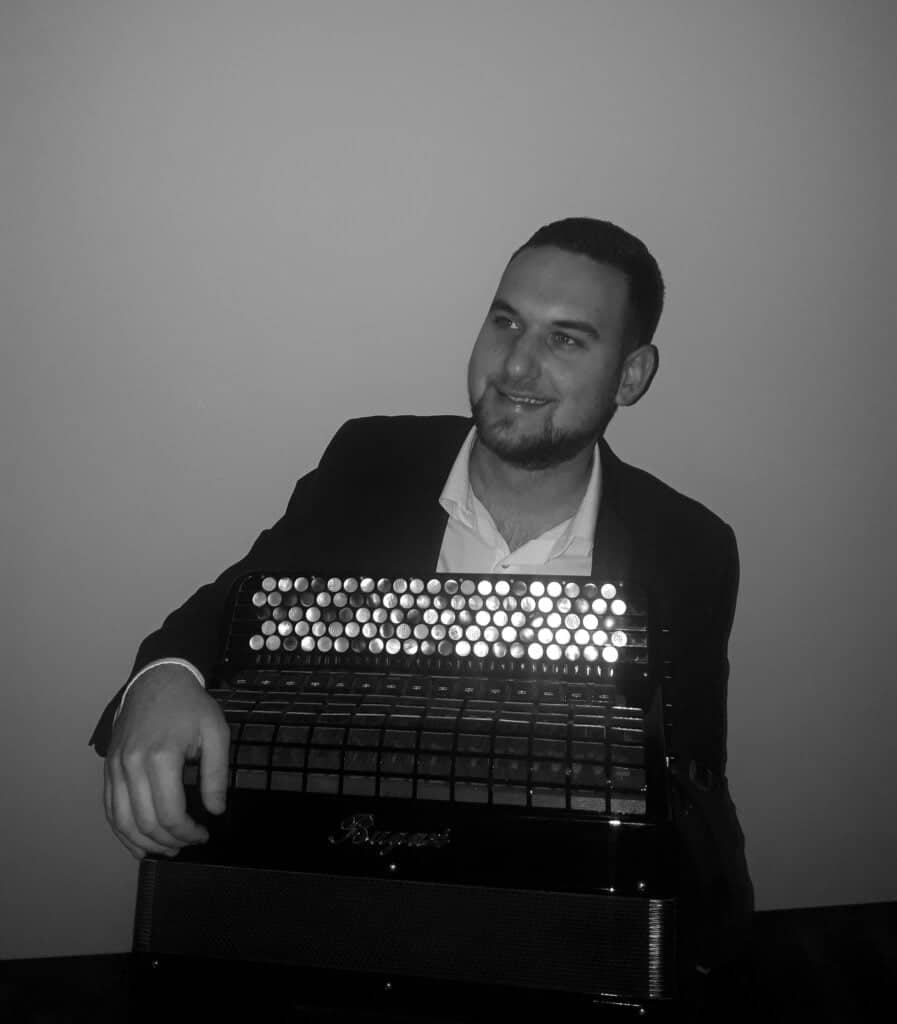 Siniša Ljubojević, geboren 1995 in Pancevo (Serbien), ein aktiver Konzertakkordeonist und Musiklehrer. Erste Musikimpulse bekam er früh bei prof. Bratislav Manasijević in Brčko (Bosnien und Herzegowina), als 9-jähriger. Seinen mittleren Abschluss beendete er in Belgrad mit dem Sonderpreis der Schule an („Kosta Manojlovic“) als einer der erfolgreichsten Schüler. Sein Hochschulstudium (Akkordeon) schloss er mit Erfolg an der Fakultät für Philologie und Kunst in Kragujevac (Klasse Prof. Zoran Rakić) mit besonderer Anerkennung des Präsidenten der Fakultät für herausragende musikalische Leistungen und künstlerischen Beitrag zur Institution ab. Derzeit studiert er im Abschlussjahr der Meisterklasse von Prof. Stefan Hussong (Hochschule für Musik Würzburg) Konzertexamen, wo er bereits zuvor sein Masterstudium abgeschlossen hatte. Während seiner Musikbildung erzielte er zahlreiche Erfolge und gewann mehr als 30 Preise bei nationalen und internationalen Wettbewerben als Solist und Kammermusiker wie zum Beispiel: Grand Prix – „Ascoltate“, 2012 in Kaunas (Litauen), Gewinner der Seniorkategorie – Trophy of Portugal 2015 in Alcobaca, 3. Platz – Internationaler Akkordeonwettbewerb Pula (Kroatien) 2016, 1. Preis – Internationaler Offener Akkordeonwettbewerb in Trossingen (Deutschland) 2017, Gewinner des DAAD Wettbewerbs 2018 für alle internationalen Studenten an der Hochschule für Musik in Würzburg und letztens (April 2021) hat er 3. Platz/Preis beim sehr renommierten internationalen Akkordeonwettbewerb “Vilnius 2021 Konkursas” gewonnen, der dieses Jahr aufgrund des Coronavirus online-stattfand. Als Solo- und Kammermusiker nahm er an Konzerten und Festivals europaweit teil (Slowenien, Italien, Litauen, Österreich, Deutschland, Schweiz, Russland, Portugal usw.), wie bei dem allrussischen Akkordeon- und Bajanfestival in Belgorod (Russland). Alcobaca Akkordeonwoche 2016 und Festivals und Projekte im Bereich zeitgenössischer Musik: impuls Graz (Österreich), KoMA (Serbien), Composers + (Litauen) usw. Er besuchte Meisterklassen der berühmten Akkordeonkünstler und Pädagogen (Inaki Alberdi, Boris Lenko, Mika Vayrinen, Juri Schischkin, Raimondas Sviackevicius, Marko Ševarlić, Veli Kujala, Krassimir Sterev). In den letzten zwei Jahren war, neben seiner Konzerttätigkeit, die Zusammenarbeit mit den Komponisten und das Erweitern und Schaffen von Akkordeonliteratur im Bereich der Solo-, Kammer- und Orchestermusik einer der wichtigsten Höhepunkte, die er hervorhob. Ljubojevic arbeitete mit Komponisten wie David Mastikosa, Cong Wei, Simon Helewel, Dominic Matthews, Lizaveta Loban, Callum Malet, Wingel Mendoza. Im April 2018 hatte er zusammen mit der Würzburger Jungephilharmonie die Uraufführung eines Doppelkonzerts („Monolog des Quingyi II“) für Akkordeon, Oboe und Orchester erfolgreich aufgeführt. Sein klassisches Repertoire spannt sich von Barock über klassische und romantische Transkriptionen, Musik von A. Piazzolla bis hin zur Avantgarde und modernen Musik des 20. und 21. Jahrhunderts. In seiner Konzerttätigkeit ist er ein versierter Spieler in vielen variablen Ensembles (Duo Synthesis – Akkordeonduo, Salonkapelle Sternenglanz – Salonmusikensemble, Duo Infernale – Violine und Akkordeon). Als Künstler, Musiker, Musikpädagoge versteht er sich als Musik- und Akkordeonvermittler und glaubt, dass das Akkordeon das Instrument des 21. Jahrhunderts ist.
